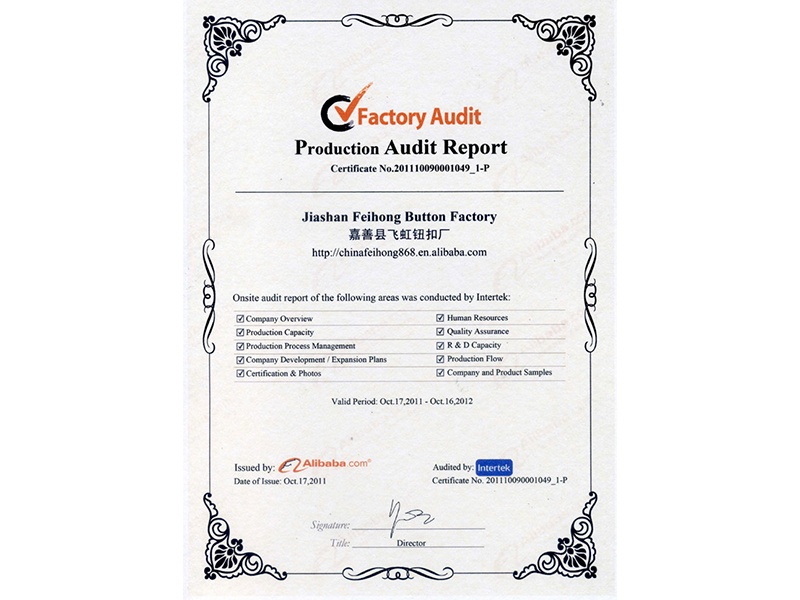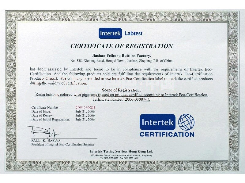 为不断提高产品品质、客户满意度,我厂组件专业的研发队伍,产品达到RoHS指令中的测试标准,并于2006年顺利通过Intertek测试公司认证,经不定期抽检,复合欧洲市场环保要求;同时引进日本检测仪器,对产品进行100%检验,以满足日本和德国市场对金属钮扣的要求。